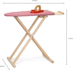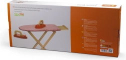 A készlet összecsukható deszkát tartalmaz lerakópolccal, valamint fa vasalót forgatható gombbal a még nagyobb élményért. Kompakt méreteinek köszönhetően könnyen eltehető, és bármely gyerekszobába illik.