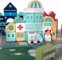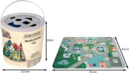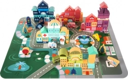 Kruzzel fa blokkok lehetőséget biztosítanak a gyerekeknek, hogy fejlesszék kreatív képességeiket és közben tanuljanak a városi környezetről. A készlet része egy színes játékszőnyeg, amely utakat és épületeket ábrázol, lehetőséget adva a fantáziadús játékhoz.