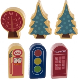 A készlet tartalmaz kiegészítőket is, például fa figurákat, járműveket és díszítő elemeket, mint például fák és utcai elemek. A nagyon részletes dizájn valósághű érzést kölcsönöz az egész játéknak, és remekül szórakoztat minden korosztályú gyerekeket.