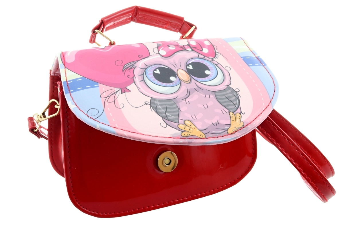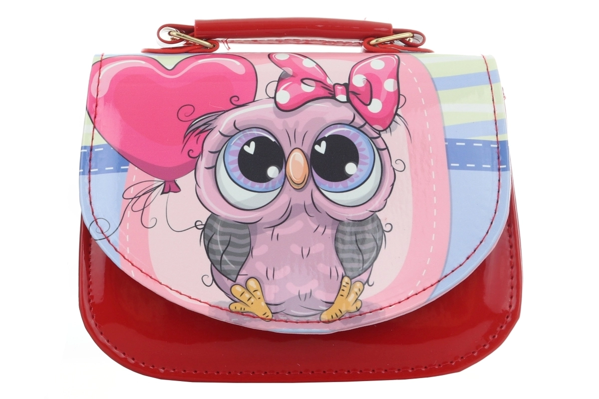 Ez az elegáns, kis méretű, piros táska bájos bagoly motívummal, masnival és szívecskékkel díszítve igazán figyelemfelkeltő. A fényes felület és az aranyszínű részletek stílusos megjelenést adnak, amely illik sétákhoz, látogatásokhoz és gyerekzsúrokhoz. Kompakt méretének köszönhetően kényelmesen hordható, és elfér benne minden apróság, amit a gyerekek magukkal szeretnének vinni.