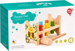 Ez a minőségi, erdei bagoly motívumos fa kalapálós pad ideális azoknak a gyerekeknek, akik szeretik az aktív és értelmes játékot. A hat színes szeg és a fa kalapács segít a pontosság, az ütőerő és a ritmus gyakorlásában.