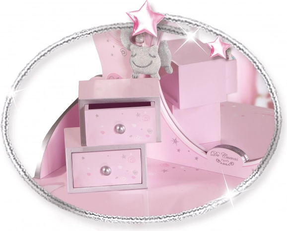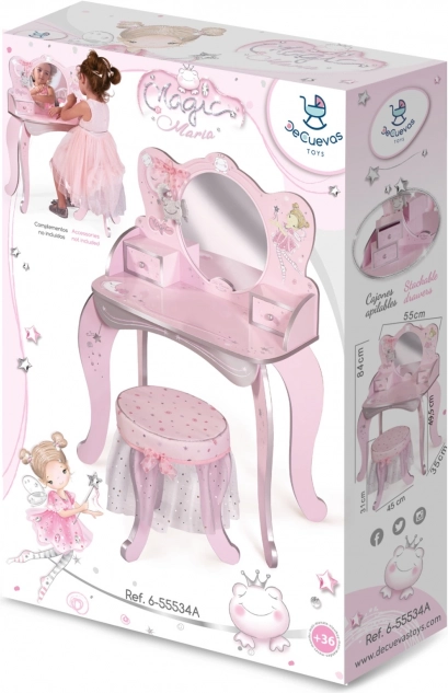 Ez a fa pipereasztal mesék inspirálta és ideális kiegészítője minden kislány szobájának. Gyönyörű nyomatokkal van díszítve, és tartalmaz: