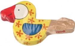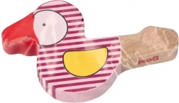 Vidám fa síp madár formájában ideális útitárs. Csak ki kell húzni a zsebből, és kezdődhet a fújás, ami fejleszti a zenei érdeklődést és gyakorolja az érzékszervi élményeket.