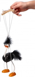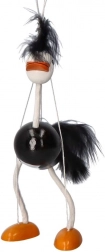 A marionett fekete törzzsel, fehér lábakkal és fejjel rendelkezik, kifejező narancssárga lábakkal. Kellemes és puha részletek a fejen és a farokon fokozzák játékos megjelenését. A gyerekek imádni fogják, ahogyan ez a strucc mozog és milyen könnyen irányítható.