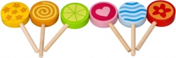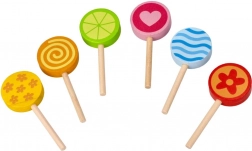 Fedezze fel a színes és fa játékok örömét finom nyalóka formájában a Gokitól. Ez a készlet hat különböző dizájnt tartalmaz, beleértve a csíkokat, virágokat és szíveket. Mindegyik ideális a gyermekek képzeletéhez és játékához.