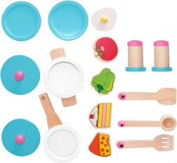 Fazék, serpenyő, fedő, merőkanál, sótartó, borsszóró és más apróságok teszik élethűvé és változatossá a főzős játékot. Minden a gyerekkezekhez igazodik.