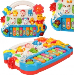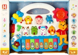 Színes, interaktív zongora a legkisebbeknek, amely melódiákat, skálát és állathangokat kínál, fejlesztve a hallást és a képzelőerőt. A billentyűk megnyomására fényhatások jelennek meg, a praktikus fogantyúval pedig otthonra és utazáshoz is ideális. A játék támogatja a kognitív fejlődést, valamint a színek és a számok tanulását – tanulás és szórakozás egyben.