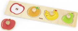 Ez a minőségi fa bedugós kirakó gyümölcsmotívumokkal (alma, narancs, banán, körte) a kisgyermekek kezeihez lett tervezve. Minden darab fa fogantyúval rendelkezik a könnyű kezelhetőségért, ami támogatja a finommotorika és az önállóság fejlődését.