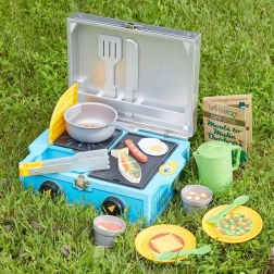 A tábori konyhára formált játék könnyen összecsukható és hordozható, ideális kültéri vagy otthoni szórakozásra.