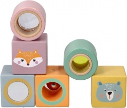 Fedezze fel a varázslatot érzékszervi fa kockáinkkal, amelyek a gyerekek érzékszerveinek stimulálására és motorikus képességeik fejlesztésére lettek tervezve. Minden kocka egyedi állatillusztrációkat és vidám pasztellszíneket tartalmaz, ami ideális játékot biztosít a kreatív játékhoz.