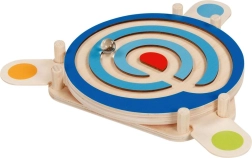 Ez a minőségi fa golyólabirintus órákig tartó, fókuszált szórakozást kínál. A körkörös, színekkel megkülönböztetett pályák különböző útvonalakon vezetik a golyót, támogatva a precíz mozdulatokat és a stratégiai tervezést. A tartós kivitel és a sima élek biztonságos játékot garantálnak.