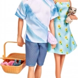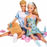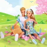 Indulj közös kalandra Steffi és Kevin babákkal! Ez a páros tökéletesen felkészült egy nyári kiruccanásra: egy kis kutyus kíséretében, pléddel, piknikkosárral és étkészlettel felszerelve.