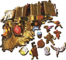 Kétrészes, kétoldalas fa puzzle TREFL Wood Craft Origin Marvel: Végtelen Kesztyű – 505 darab