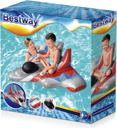 Induljon kalandra a felfújható repülővel Bestway, ami ideális társ a vízi játékokhoz. A tartós fogantyúknak köszönhetően a legvadabb hullámokat is kényelmesen kezelheti. A valósághű grafika és a lenyűgöző 136 x 135 cm méret minden fiatal pilóta szívét megdobogtatja. Prémium anyagok és gondos kivitelezés biztosítják a szórakozást a parton vagy a medencében.