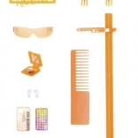A babához számos stílusos kiegészítő tartozik, beleértve a fésűt, napszemüveget, vállfát, sminkpalettát és italtartót, amely nagyszerű hely a stylinghoz és játékhoz.