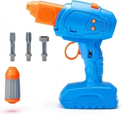 A csomag része egy gyerek fúrógép cserélhető fejekkel, amely hűen utánozza a valódi szerszámot, ugyanakkor biztonságos a kis kezek számára. A könnyű és masszív, minőségi műanyagból készült kialakítás alkalmas a mindennapos játékra otthon és utazás közben is.