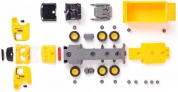 A szett tartalmazza a jármű műanyag elemeit és a kerekeket saját összeszereléshez. A gyerekek összeállítják a járművet, és már indulhatnak is az építkezésre.