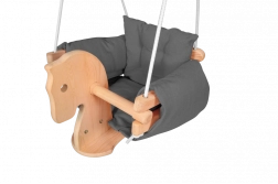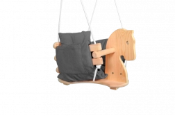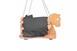 Kényelmes gyermek hinta lovacska dizájnnal, fa kerettel és textil anyaggal, ideális a legkisebb gyerekek kényelmes pihenéséhez.