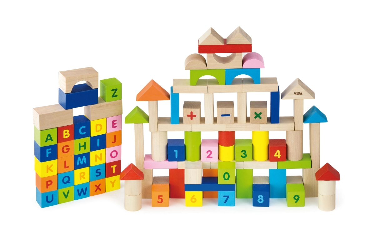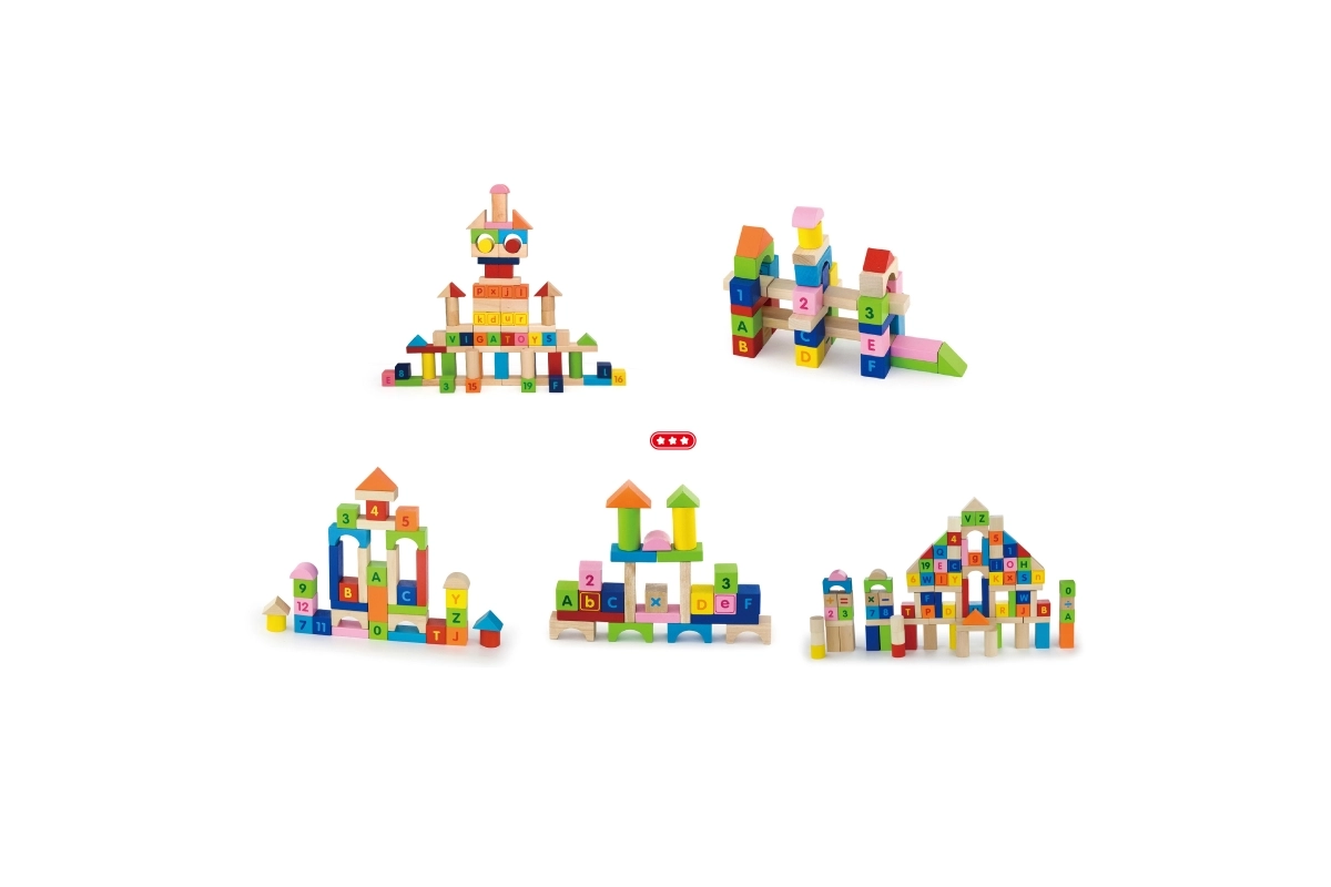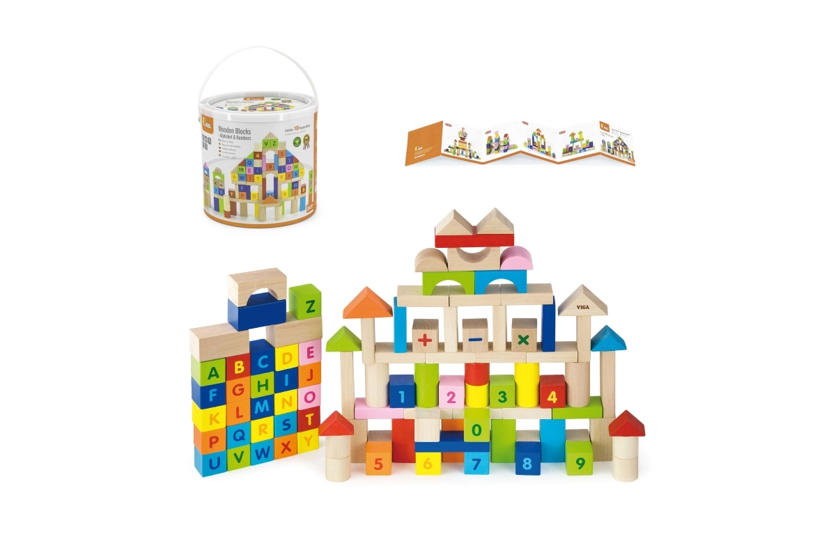 viga blocchi educativi in legno 100 pz – lettere e numeri