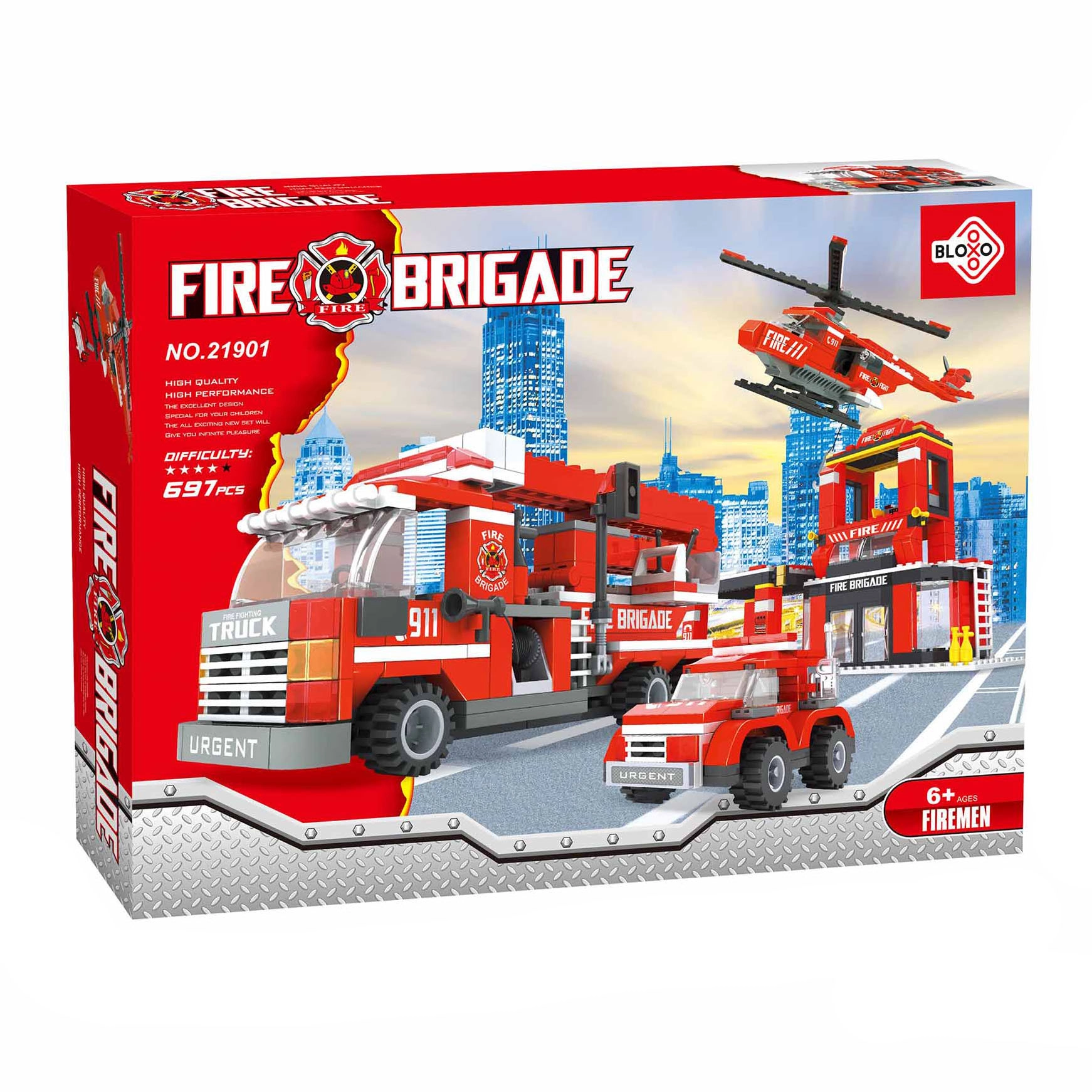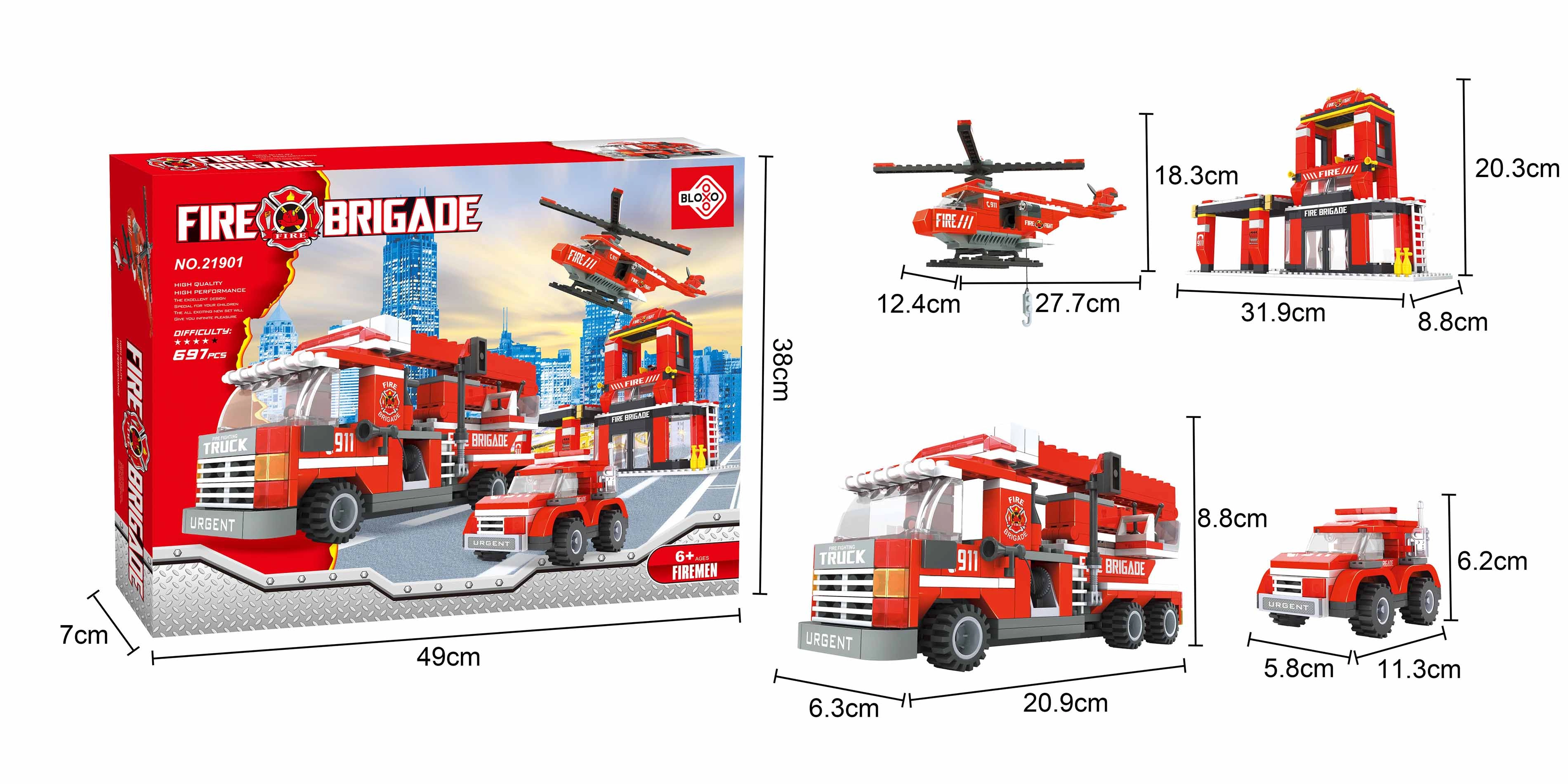 Set di costruzione compatibile Bloxo Vigili del Fuoco 636 pezzi