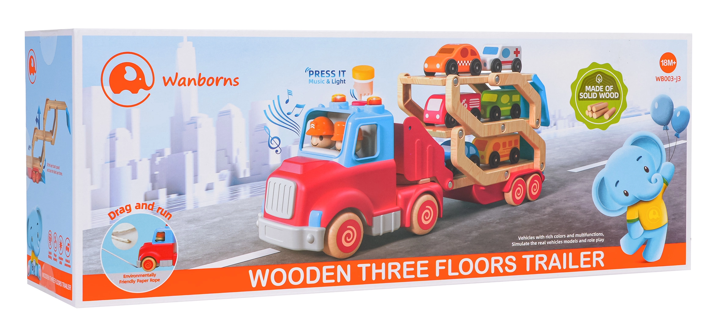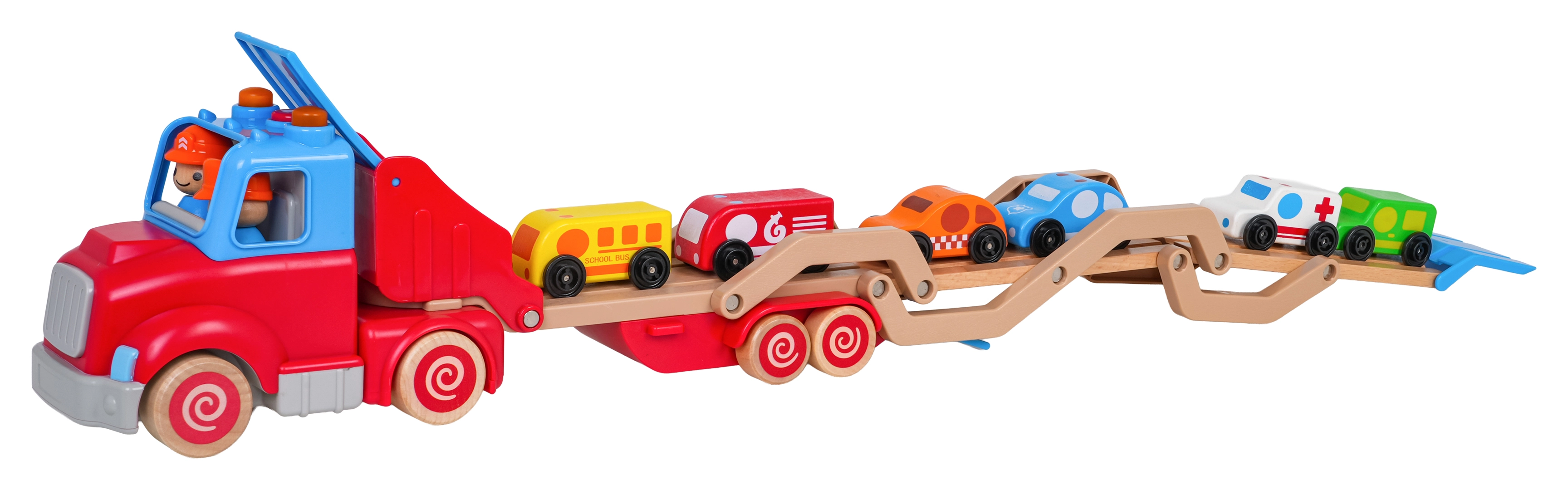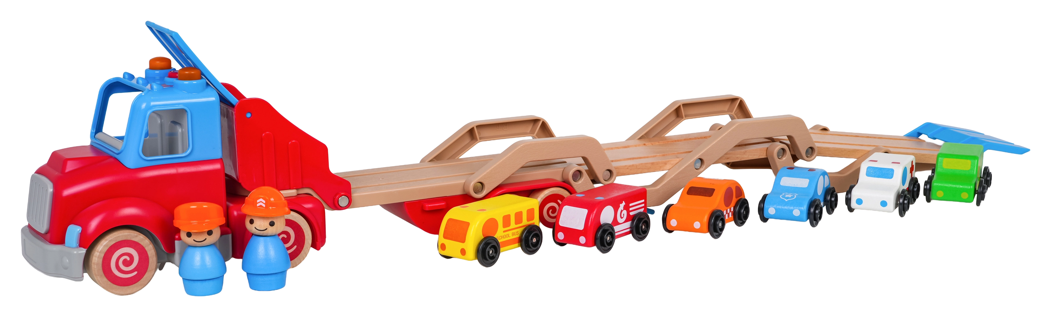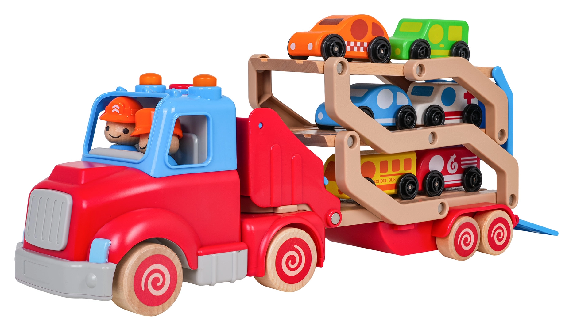 Carro attrezzi in legno con macchinine ed effetti luminosi e sonori