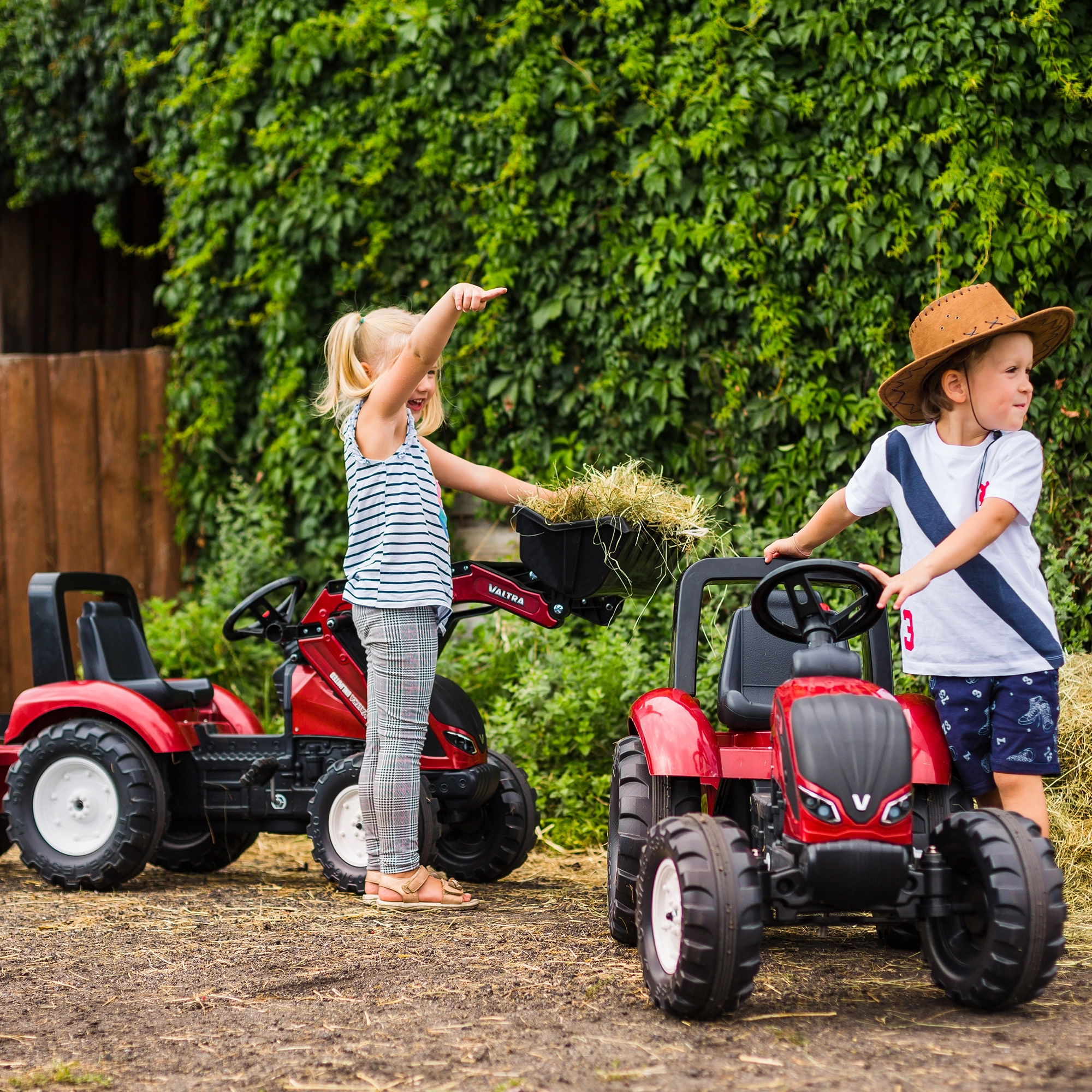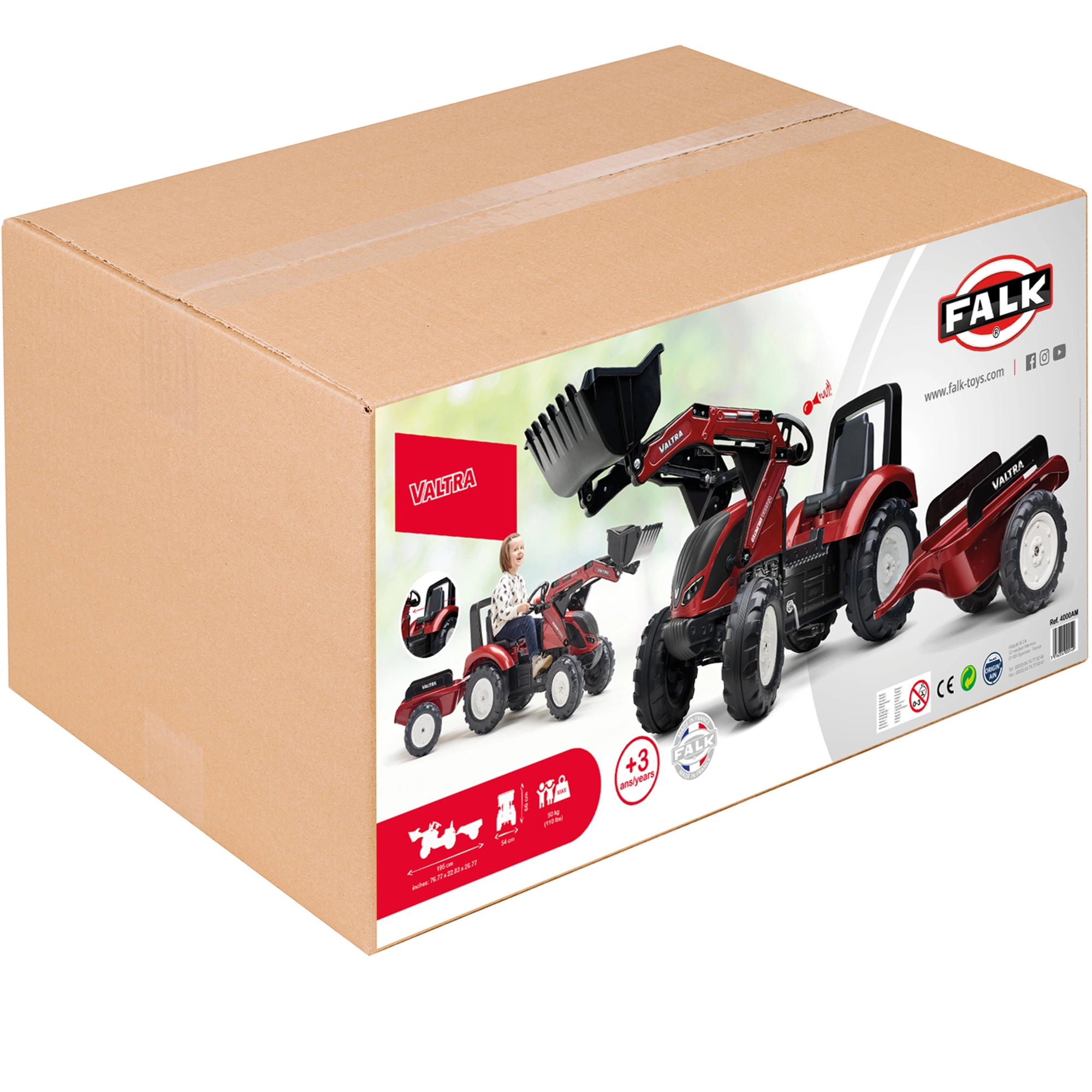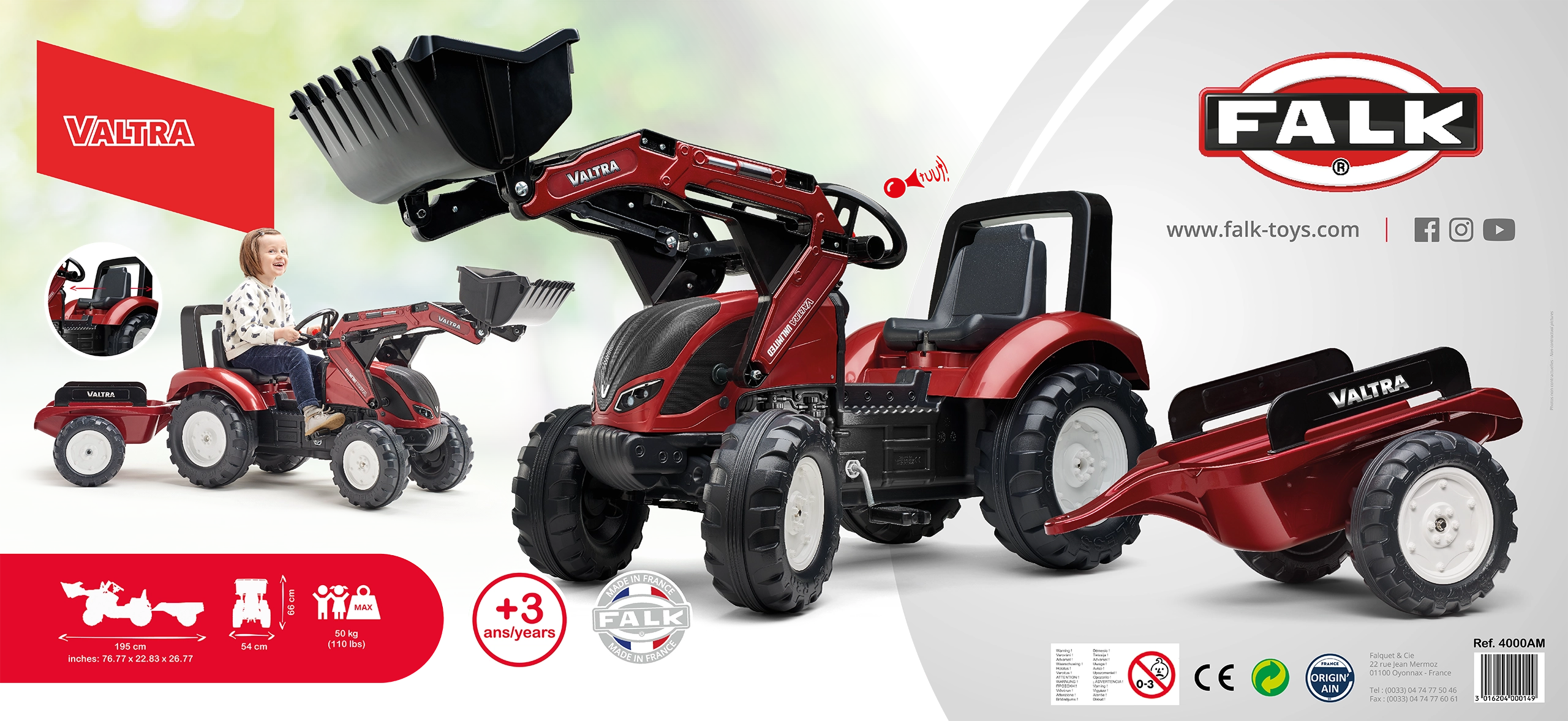 Trattore a pedali per bambini VALTRA con benna anteriore e rimorchio staccabile dai 3 anni
