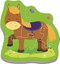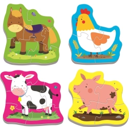 I puzzle con tema animali della fattoria offrono un'attività divertente ed educativa per i tuoi bambini. Questo set contiene 18 pezzi che possono essere assemblati per creare 4 diverse immagini di animali: cavallino, mucca, pulcino e maialino. Grazie a questi, i bambini imparano a riconoscere gli animali e esercitano il conteggio.