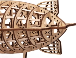 Immergiti nel mondo affascinante dello steampunk con questo kit di montaggio di un dirigibile in legno. Questo set offre un'esperienza unica grazie ai dettagli elaborati e agli elementi meccanici come le eliche e le ruote mobili.