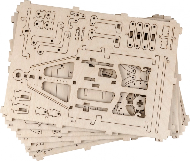 119 pezzi tagliati al laser in compensato di betulla si incastrano alla perfezione. L’assemblaggio è pulito, intuitivo e adatto anche ai principianti.