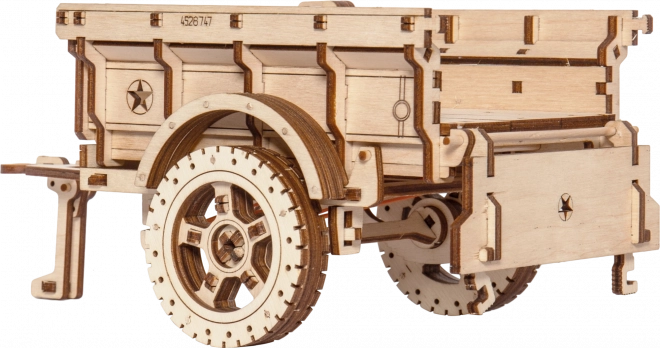 Il rimorchio militare WOODEN CITY è un elegante puzzle meccanico in legno che farà felici tutti gli appassionati di tecnica e modellismo. Grazie al taglio laser preciso sul compensato di betulla, i pezzi si incastrano perfettamente – il montaggio avviene senza colla ed è pulito, veloce e divertente. Il risultato è un impressionante modello decorativo con elementi funzionali, perfetto per accompagnare ad esempio un’auto in legno tipo Jeep 4x4.