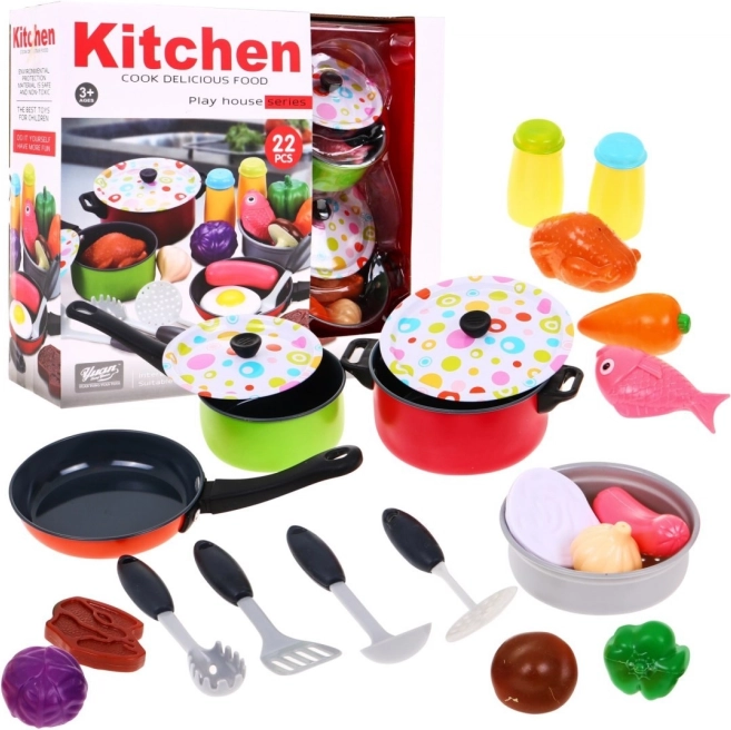 Set colorato per cucinare per bambini 3+ con pentole, giocattoli e accessori da cucina - 22 pezzi
