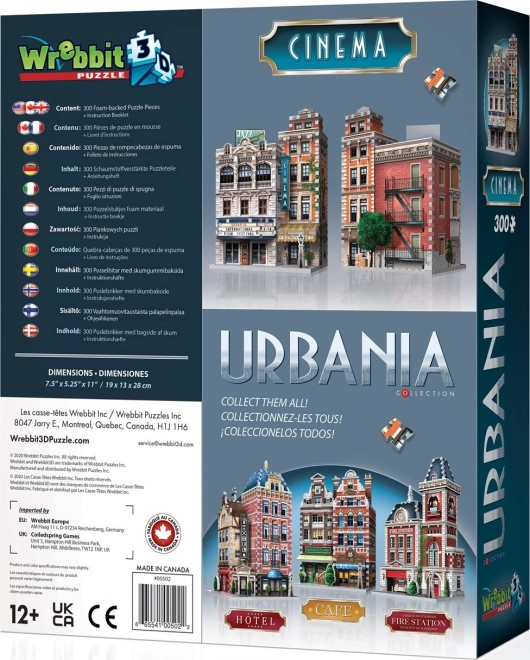 Costruisci un elegante cinema ed espandi la tua cittadina della collezione URBANIA. Il puzzle 3D WREBBIT unisce un montaggio rilassante a un risultato realistico che spicca su scaffali e scrivanie. Grazie alla forma ingegnosa e allo spessore dei pezzi, il modello resta saldamente assemblato senza necessità di incollaggio.