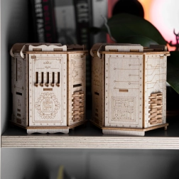 Fort Knox Pro non solo un puzzle, ma anche una soluzione di stoccaggio unica. Questo puzzle in legno ideale per chi apprezza la combinazione di arte e ragionamento logico. Include 73 pezzi tagliati con precisione, abbinati ad una sfida impegnativa per tutte le et . Utilizza le istruzioni e il codice QR inclusi per eventuali suggerimenti.< >