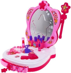 Deliziosa toeletta per bambine dai 3 anni che offre uno specchio stellato luminoso, accompagnamento musicale e un ricco set di accessori per un gioco creativo. Con una magica bacchetta rosa, phon, gioielli e “cosmetici” giocattolo, sviluppa fantasia e motricità fine. Alimentazione 3× AA (non incluse).