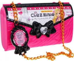Una volta aperta, la borsetta rosa si trasforma in una pratica mini toeletta, dove tutto è ordinatamente disposto. Il set stimola creatività, motricità fine e fantasia e permette di imitare in sicurezza il mondo degli adulti.