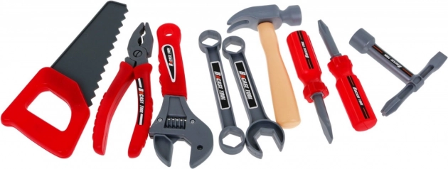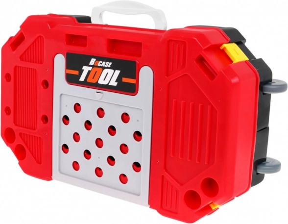 Dotazione ricchissima: avvitatore/trapano a batteria, martello, morsa, sega, pinze, chiavi a brugola e a forchetta, cacciaviti, viti, dadi, ingranaggi, metro e componenti di lavoro filettati per infinite attività di avvitatura e montaggio. Grazie all’organizzazione intelligente degli attrezzi, i bambini allenano ordine, pazienza e coordinazione mano-occhio.