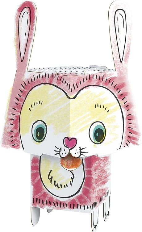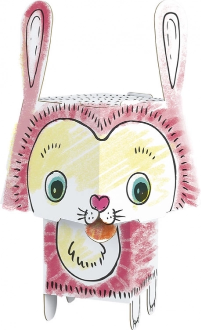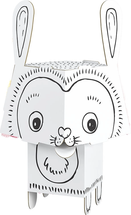 Divertente puzzle 3D di carta a forma di coniglio che porta ai bambini gioia creativa sia nel colorare che nel montare. Il modello in robusto cartoncino bianco ha pezzi tagliati con precisione che si incastrano facilmente senza colla né forbici. Leggero, stabile e resistente una volta assemblato, adatto a pastelli, pennarelli, marker e colori.