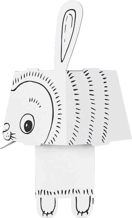 I pezzi tagliati con precisione si incastrano tra loro, così i bambini possono montare il coniglietto da soli e in sicurezza.