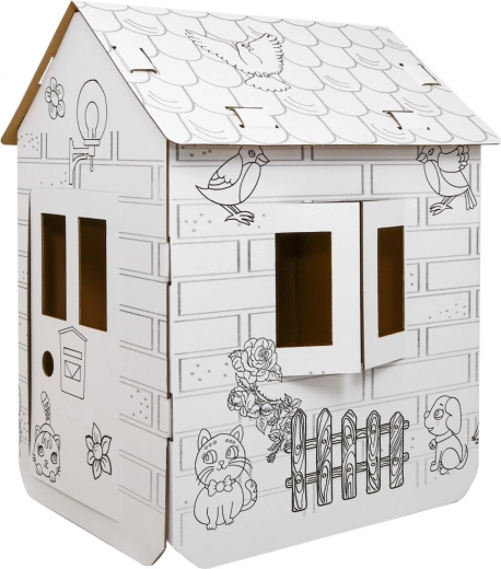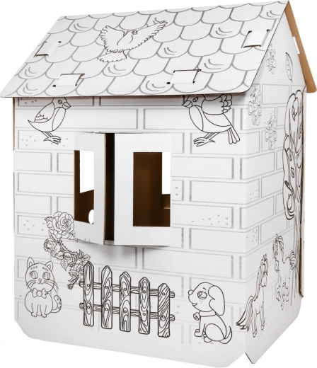 La grande casetta di cartone da colorare offre ai bambini dai 3 anni ore di divertimento creativo. Dispone di finestre e porte apribili, motivi con animali da colorare e si monta facilmente senza attrezzi. Stimola creatività, motricità fine e fantasia durante il gioco in interni.