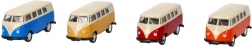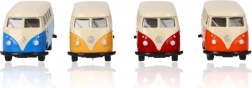 Il Volkswagen T1 MicroBus è un modello dettagliatamente lavorato che entusiasmerà ogni amante del design retrò. Questo modello in metallo con ruote in gomma è ideale sia per scopi collezionistici sia per il divertimento dei bambini. Grazie al meccanismo a volano, basta tirare il veicolo indietro e si muove da solo in avanti.