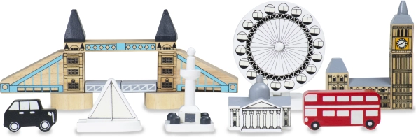 Questi splendidi blocchi rappresentano famosi edifici di Londra, come il Tower Bridge, il Big Ben e il London Eye.