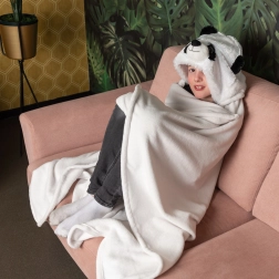 La coperta con cappuccio COZY NOXXIEZ Panda è progettata per il massimo comfort e divertimento. Il pile super morbido riscalda piacevolmente, il cappuccio con orecchiette da panda e stampa dona un aspetto adorabile e le tasche angolari a forma di zampa mantengono le mani ben calde. Perfetta per rilassarsi sul divano, leggere e per le favole della sera.