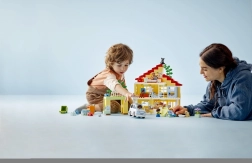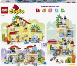 Scopri la casa di famiglia LEGO DUPLO 3 in 1, che guida i bambini attraverso la vita quotidiana, il gioco e l’apprendimento. Una casa a tre piani con cinque stanze, 7 personaggi e tanti accessori che favoriscono lo sviluppo delle abilità sociali, la fantasia e la motricità fine. Non mancano il mattoncino luminoso a forma di stella, l’orto con il raccolto e una macchinina elettrica a energia solare – ideale per bambini dai 3 anni.