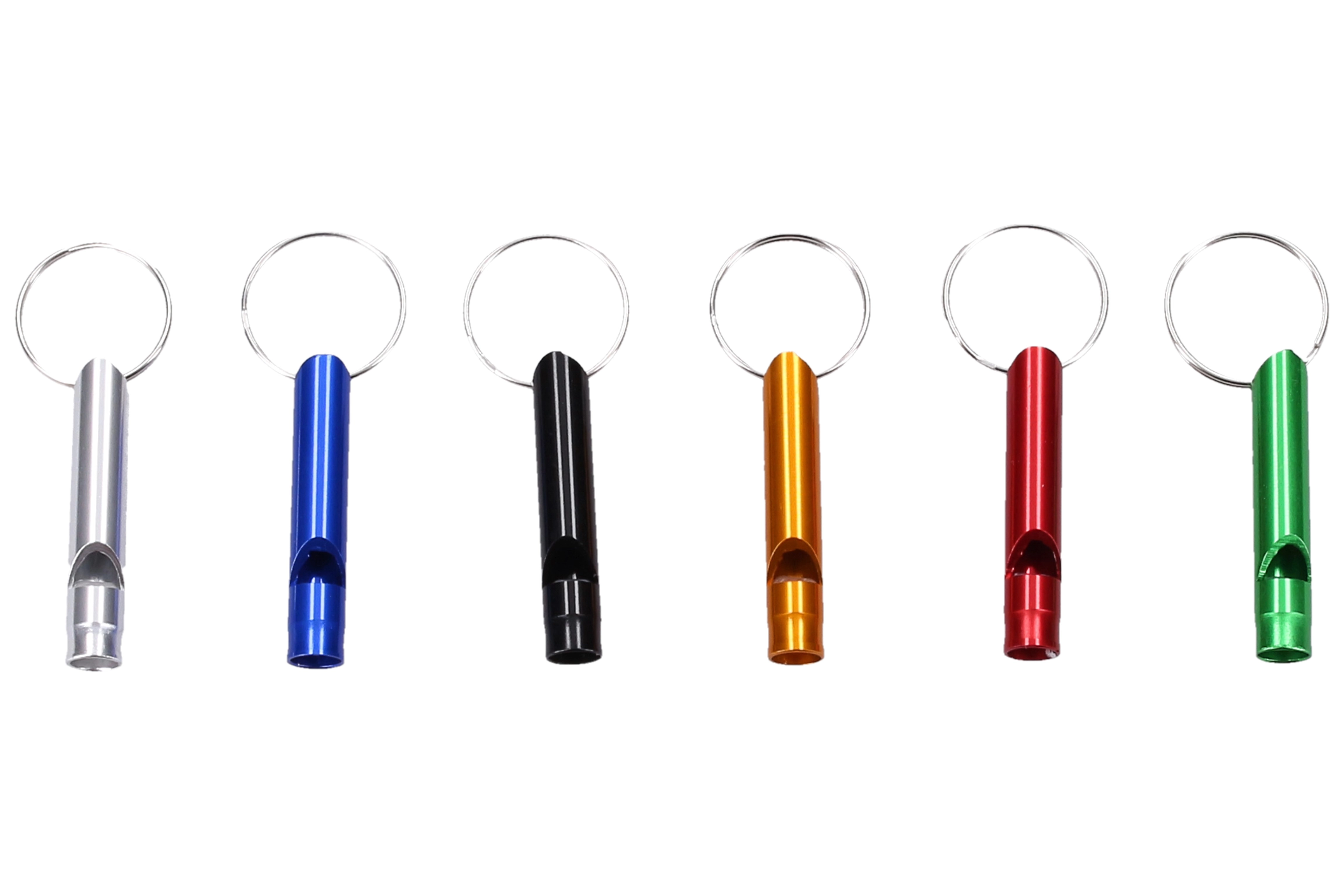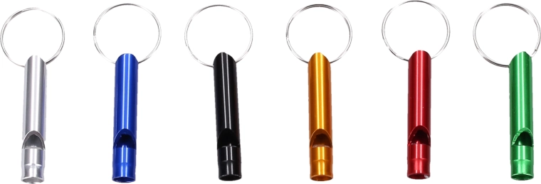 Pratico portachiavi con fischietto colorato della lunghezza di 4,5 cm, ideale per chiavi, zaino o borsa. Fornisce un rapido segnale acustico per aumentare la sicurezza, orientarsi o per puro divertimento.