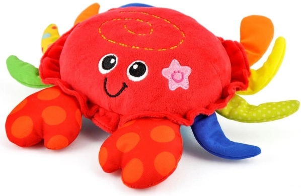 Il granchio è molto piacevole al tatto, il materiale morbido e i colori vivaci piaceranno a ogni bambino piccolo. Inoltre, 10 zampette colorate incoraggeranno il bambino a gattonare e a strisciare sotto gli ostacoli. Al tocco il granchio sobbalza ed emette suoni buffi. Riproduce melodie. Vibra e si muove. Incoraggia il bambino all’attività. Il giocattolo supporta la coordinazione occhio-mano. È completamente sicuro per il bambino, realizzato con materiali certificati della massima qualità.