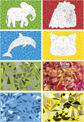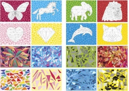 Ogni set include quattro diverse immagini e quattro fogli di adesivi, offrendo un'ottima opportunite per sviluppare le tue abilite artistiche. Ideale per bambini dai 7 anni, ma apprezzato anche dagli adulti.
