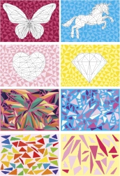 Il set include vari design composti da forme geometriche e colori, permettendo di creare opere d'arte impressionanti.