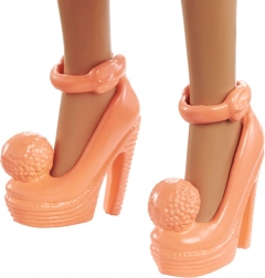 Gli occhiali da sole bianchi e le scarpe con plateau color pesca esaltano la personalità della bambola e ampliano le possibilità di styling in ogni gioco.