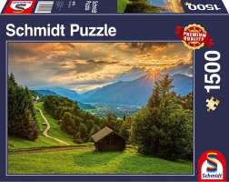 Goditi relax e concentrazione con il puzzle di qualità SCHMIDT con il motivo del tramonto sulla villaggio di montagna Wamberg. Il set da 1500 pezzi offre un’immagine splendida con colori ricchi e dettagli nitidi e, una volta completato, misura circa 83,6 × 58,8 cm.