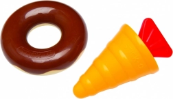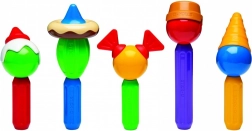 Pezzi colorati, personaggini e strumenti sostengono la fantasia, lo sviluppo della presa e la coordinazione occhio–mano in ogni gioco.